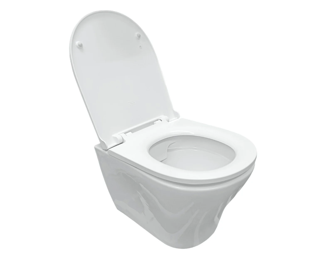 Данный подвесной унитаз имеет скрытое крепление к стене, безободковую чашу и комплектуется сиденьем из дюропласта с системой soft close.