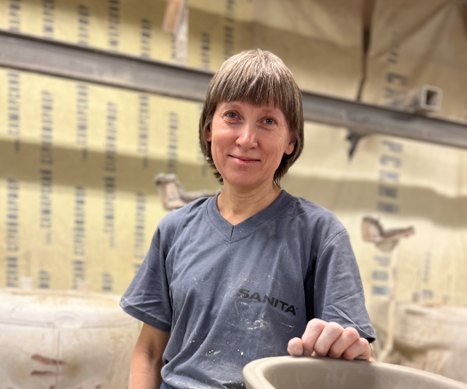 Сегодня в её руках - унитаз‑компакт «Виктория». Для Ольги Владимировны это не просто очередное изделие. Это результат кропотливого труда, в который она вложила душу и мастерство.