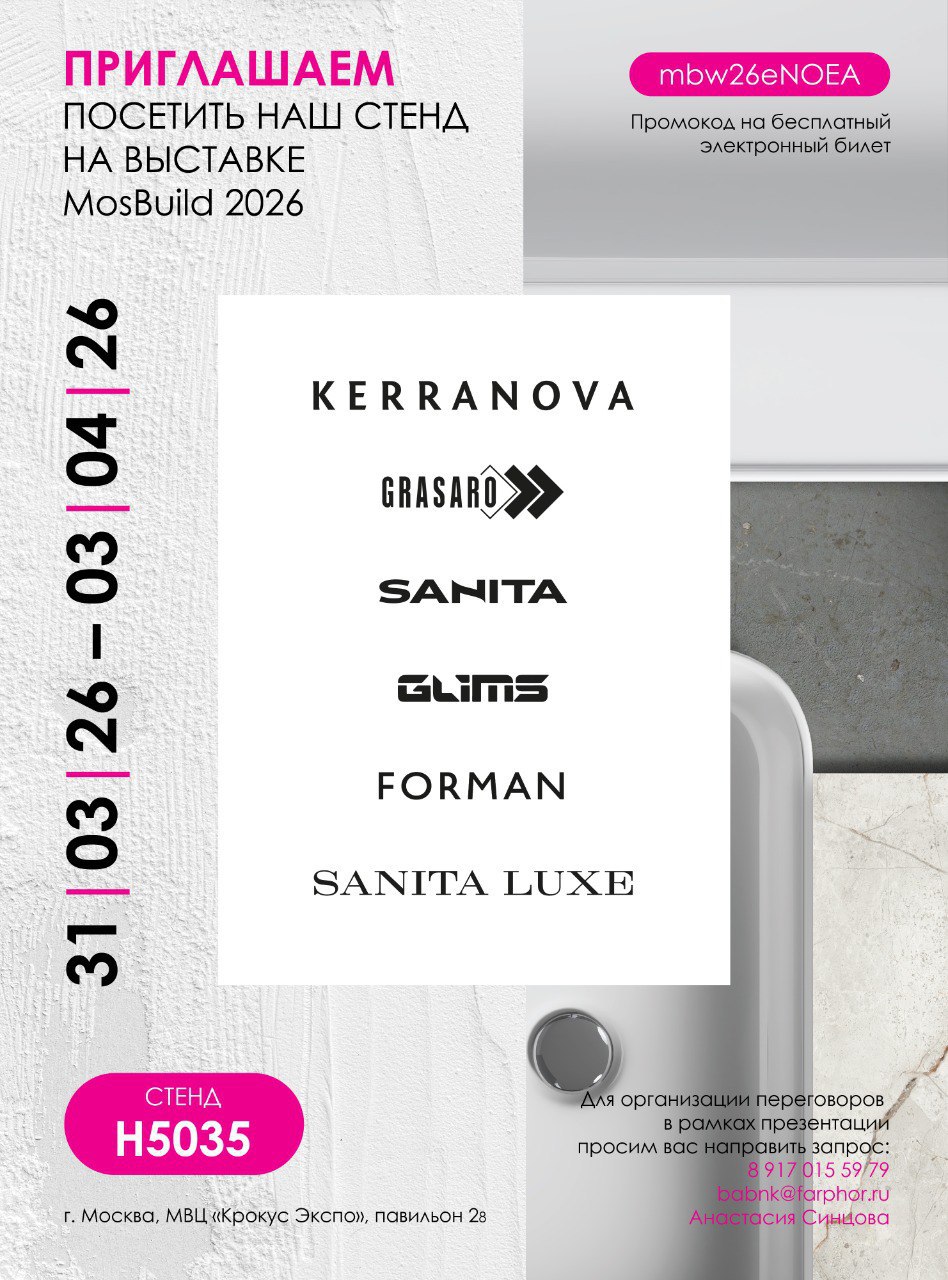 Уникальные унитазы и умывальные столы, керамогранит и строительные смеси SANITA LUXE, KERRANOVA, GRASARO, FORMAN, GLIMS.